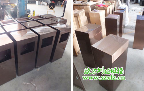 作為一家酒店,采購不銹鋼垃圾桶要求極高。垃圾桶的選擇不容馬虎,兩者搭配得融入酒店的文化氣息。我們欣方圳公司業(yè)務(wù)部人員,根據(jù)酒店的特色給他推薦了一款C60方形不銹鋼果皮箱。洽談中對方對我們此款垃圾桶很是滿意,只不過顏色需要改善。我們設(shè)計(jì)師在對方的提議中,為他把顏色改為了土豪金色,高端大氣,上層次。本款采購的不銹鋼果皮箱規(guī)格為:350*350*680mm,方形設(shè)計(jì),采用304#優(yōu)質(zhì)砂光不銹鋼材料模壓成型,金屬亮澤,高雅美觀跟酒店搭配在一起,可謂是天作地和一對。