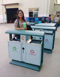 北京傳媒公司是我司的新顧客,初次合作都這么信賴,是我們欣方圳人員的驕傲。這次采購的這款F206鍍鋅烤漆垃圾桶,與以前的垃圾桶有點(diǎn)獨(dú)特。記得,此款鋼制垃圾桶為華僑城的歡樂海岸,深圳南山商業(yè)文化中心大量供應(yīng)過。他們?cè)谝?guī)格上面沒有太多變化,顏色上面有鮮明的對(duì)比。此款鋼制垃圾桶采用外鍍鋅鋼材質(zhì),外框鍍鋅鋼厚度為2mm;內(nèi)膽鍍鋅鐵皮厚0.5mm;外桶L550*W550*540*H1030MM;新做滴鍍鋅烤漆垃圾桶,有雙面投遞,上面絲印工藝的印花保持3到4年。投遞口兩個(gè)圓圈,另外一個(gè)是由搖蓋投遞。白色絲印有可回收物標(biāo)志。此圖片上沒有標(biāo)準(zhǔn),北京傳媒需要的廣告語,其他鋼制垃圾桶都有標(biāo)注。提醒大伙,不要亂扔垃圾。保護(hù)環(huán)境,人人有責(zé),我們的家園更有愛,更環(huán)保。