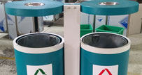 深圳大鵬景區G99鋼木分類戶外垃圾桶規格為1040*400*1000mm,鋼鐵部分生產工藝采用鋼鐵鋼板彎制成型,根據各自特征進行切割和焊接,并進行一些調整工序,將戶外...