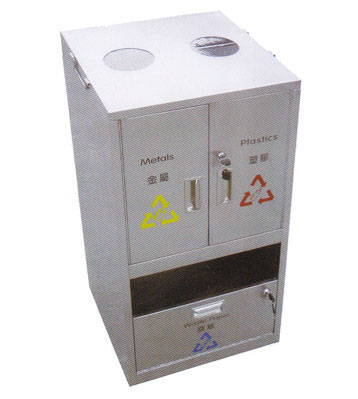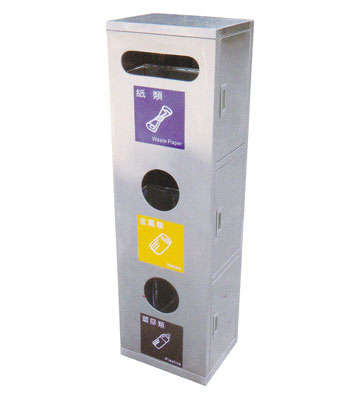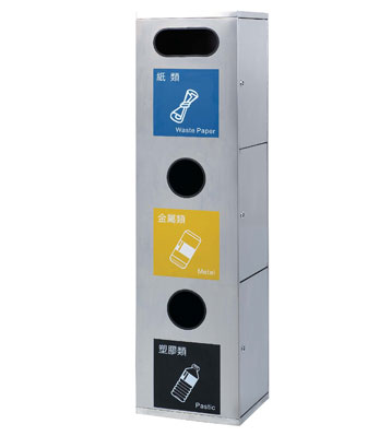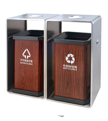 深圳新標準城中村街道社區不銹鋼五分類垃圾桶由有害垃圾、玻璃、金塑紙(為金屬、塑料、紙張的簡稱)、廚余垃圾、其他垃圾這5分類不銹鋼垃圾桶組合而成。其中金塑紙、其他垃圾日常產生量較大,所以分類收集容器也