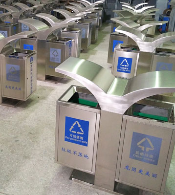 欣方圳展翅不銹鋼分類垃圾桶批量生產(chǎn)圖