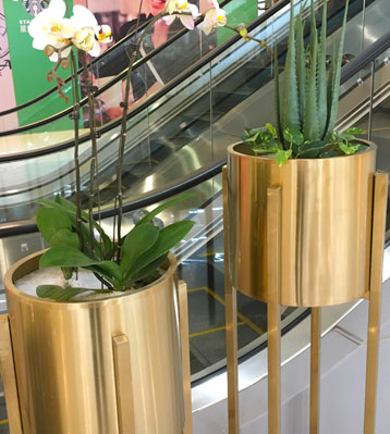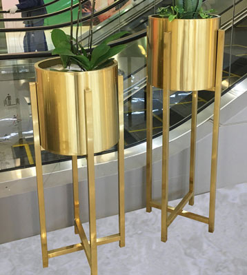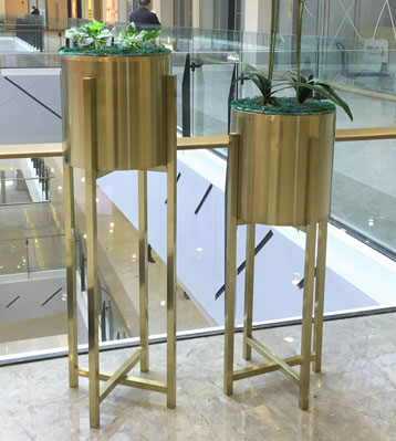 為美化裝飾商場內(nèi)部環(huán)境,成都中海物業(yè)找到欣方圳訂購一批不銹鋼圓柱形帶架花盆用于擺放商場各樓層公共空間,種上鮮花綠植,即可美化裝飾商場空間...