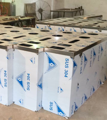 欣方圳不銹鋼五分類環(huán)保回收箱批量生產(chǎn)圖