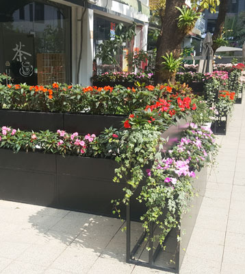 欣方圳戶外雙層組合金屬烤漆花箱批量生產圖