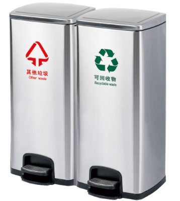 欣方圳120L室內不銹鋼腳踏四分類垃圾桶批量生產圖