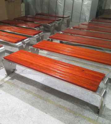 欣方圳不銹鋼戶外休閑凳凳面防腐木材質制作流程示意圖,工藝領先,品質卓越,真正經久耐用。