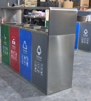 • 使用范圍:不銹鋼戶外四分類垃圾箱表面光滑、亮麗,是市政、企業、學校、小區、酒店、機場、汽車站等戶外分類垃圾收集擺放的首選。