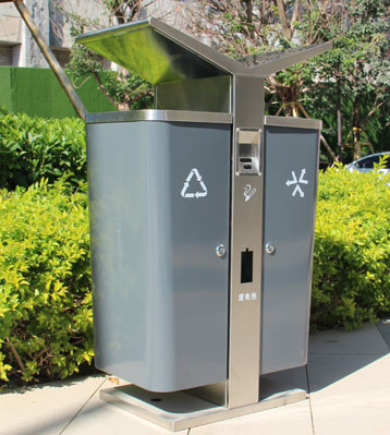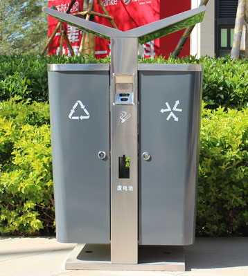 • 使用范圍:戶外分類式垃圾箱表面光滑、亮麗,是商業街,城市道路,戶外廣場,地鐵、公交車站,機場高鐵站等戶外果皮垃圾收集容器。