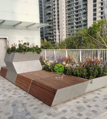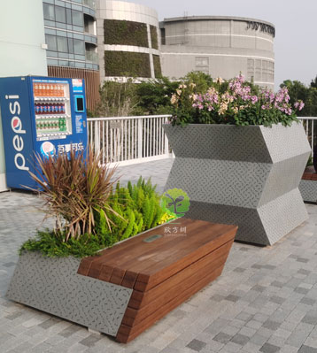 戶外不銹鋼景觀花盆座椅擺放圖