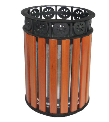 公園花邊鋼木垃圾桶產(chǎn)品展示圖