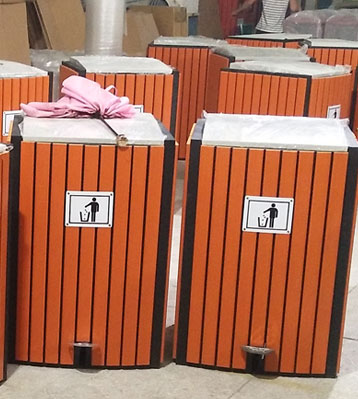 戶外腳踏式鋼木單桶垃圾桶工廠生產圖: