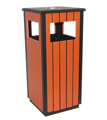 小區鋼木單桶垃圾桶戶外擺放圖: