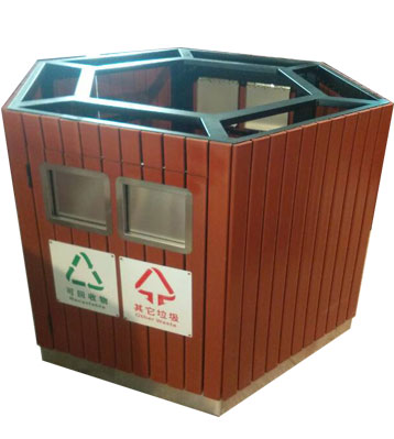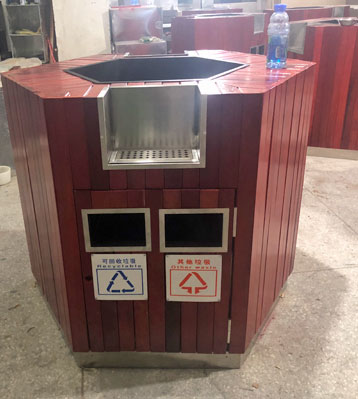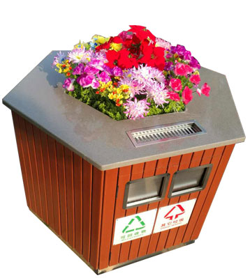 • 產品名稱:高鐵站鋼木垃圾桶帶花箱(高鐵站六角花盆垃圾桶)