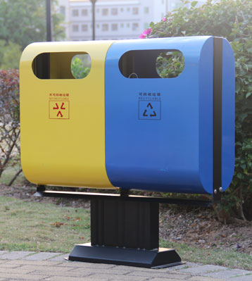 F139戶外鋼板四分類垃圾桶
