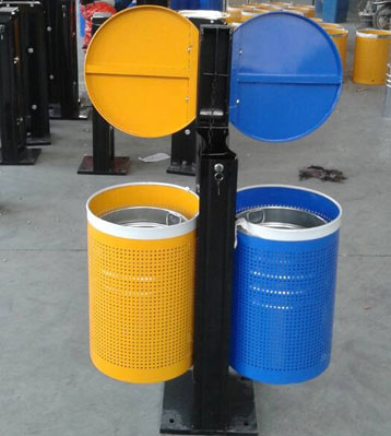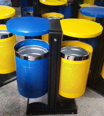 欣方圳戶外鋼板分類垃圾桶工廠批量生產圖